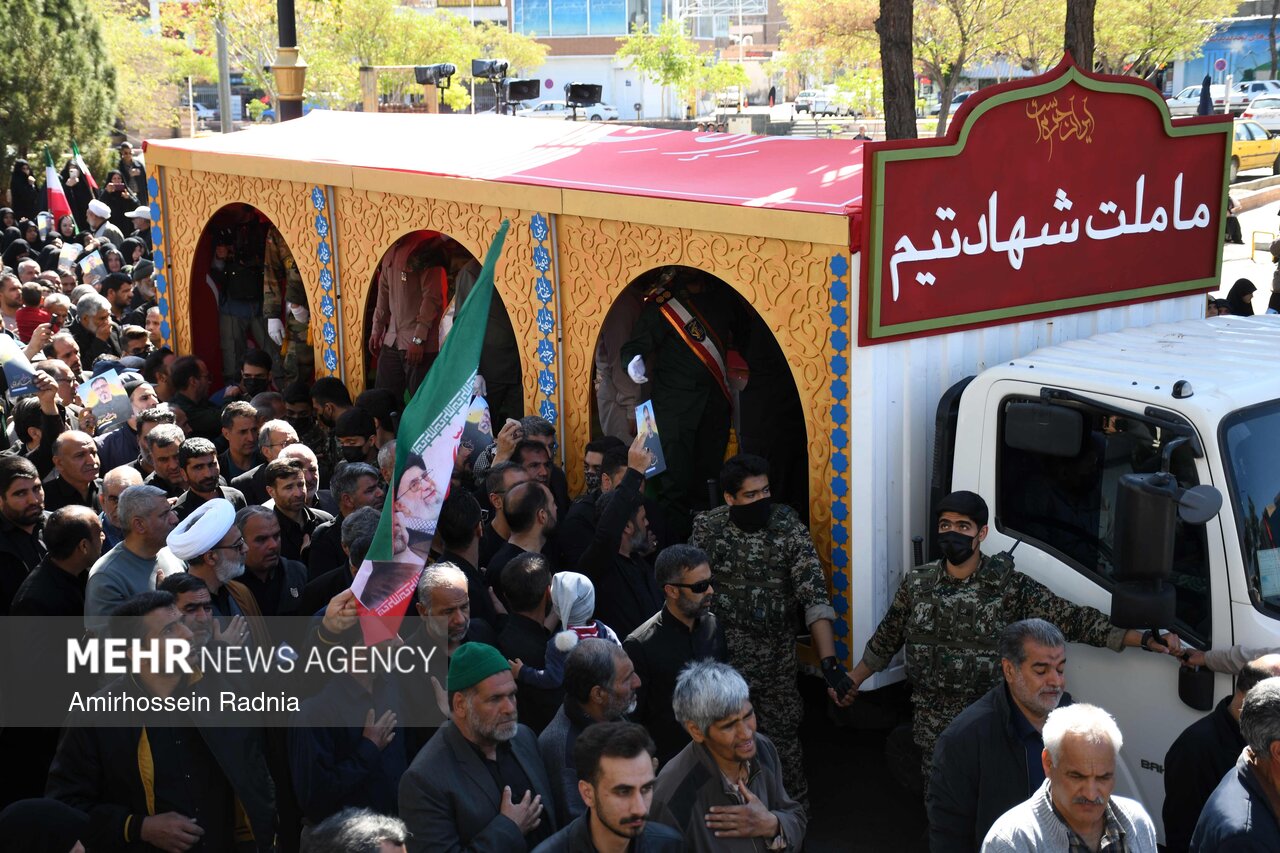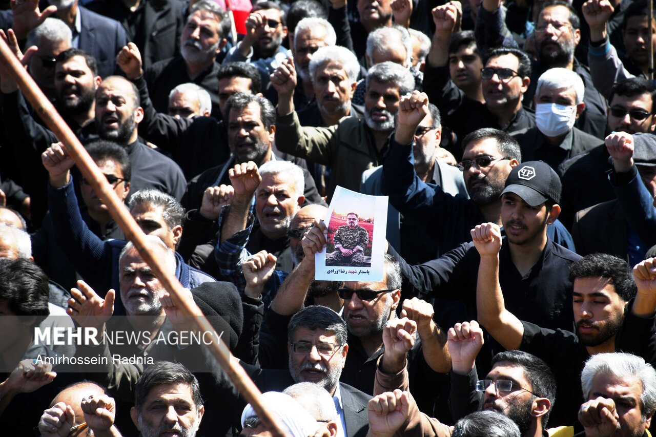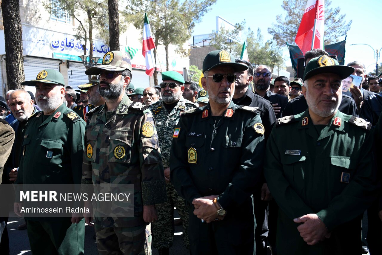 مراسم تشییع پیکر شهیدان اورادی و میری از شهدای جنگ رمضان صبح امروز ۱۴ فروردین ۱۴۰۵ باحضور پرشور و انقلابی مردم بیرجند به سمت گلزار شهدای این شهر برگزار شد.