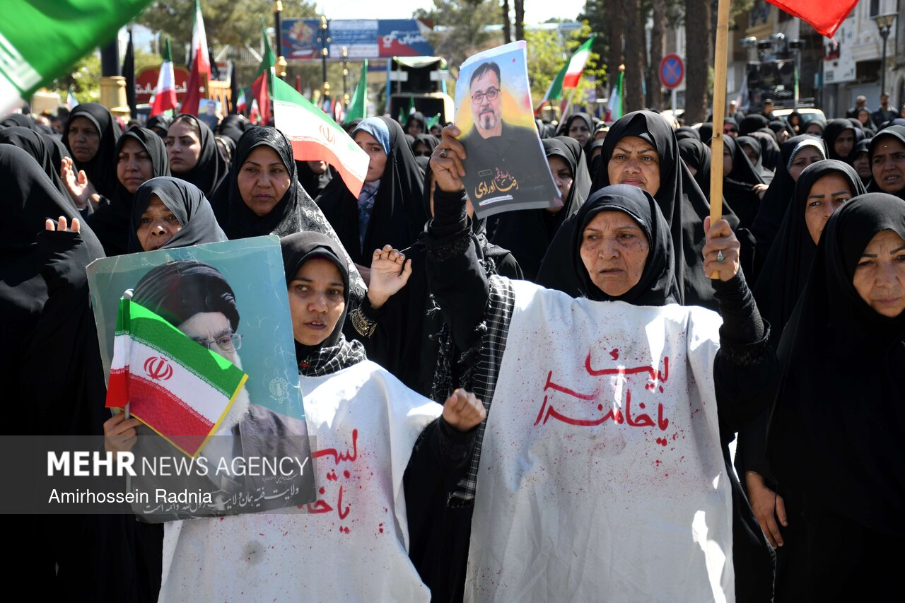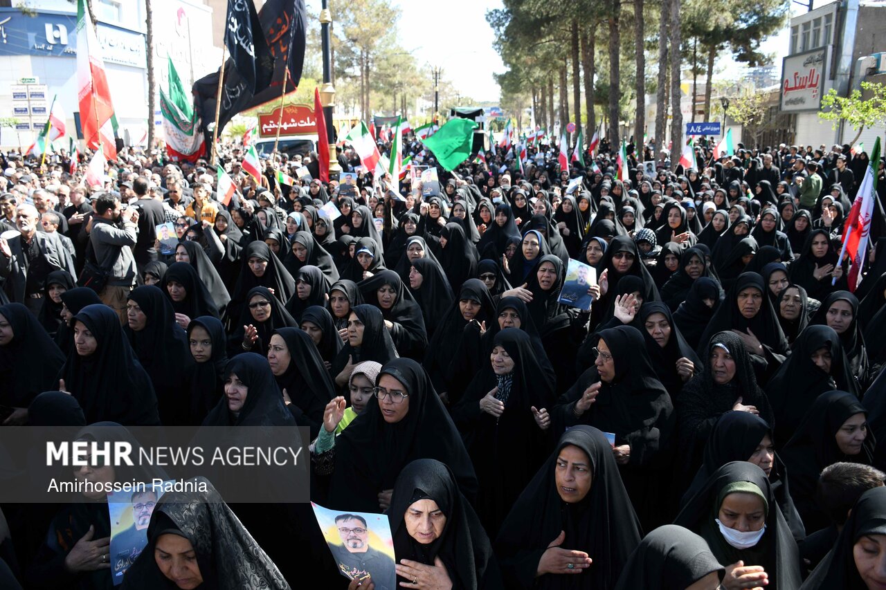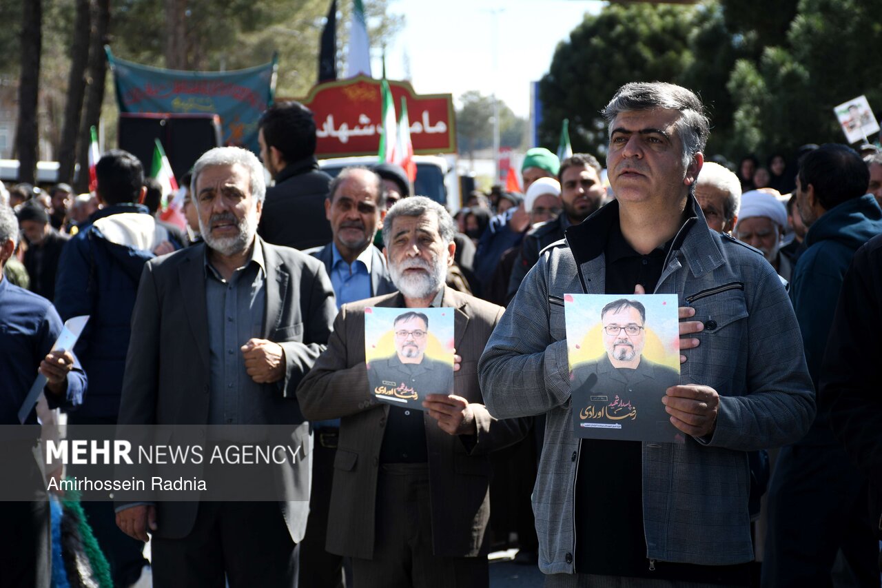 مراسم تشییع پیکر شهیدان اورادی و میری از شهدای جنگ رمضان صبح امروز ۱۴ فروردین ۱۴۰۵ باحضور پرشور و انقلابی مردم بیرجند به سمت گلزار شهدای این شهر برگزار شد.