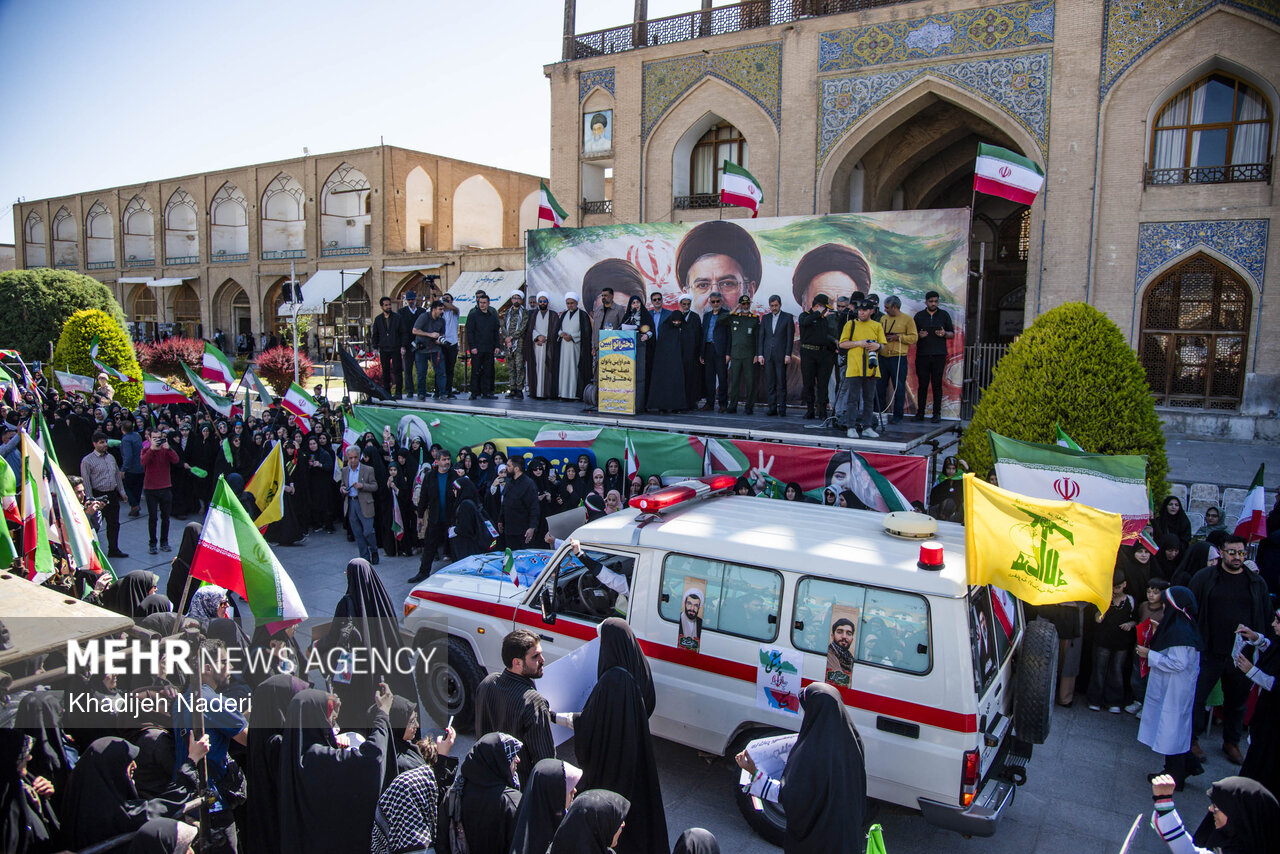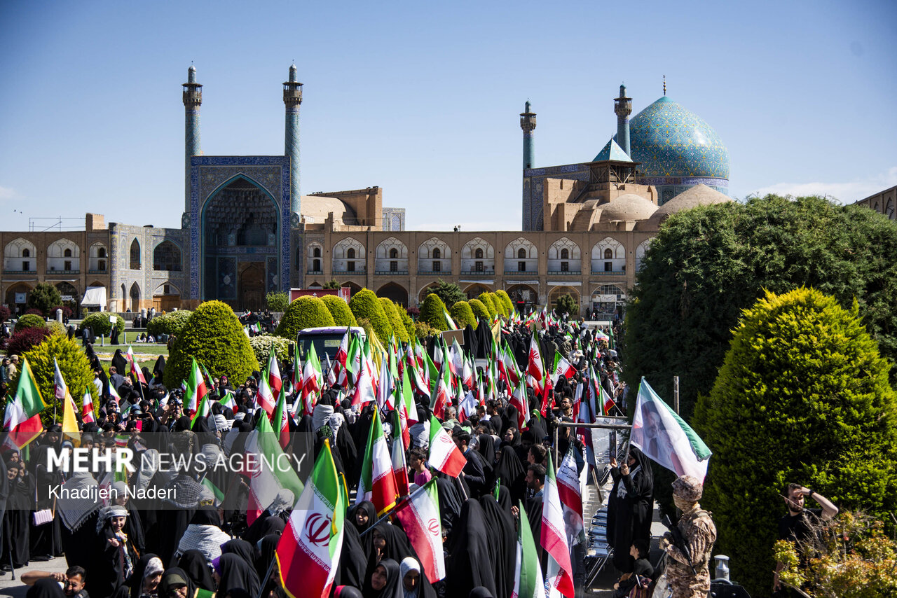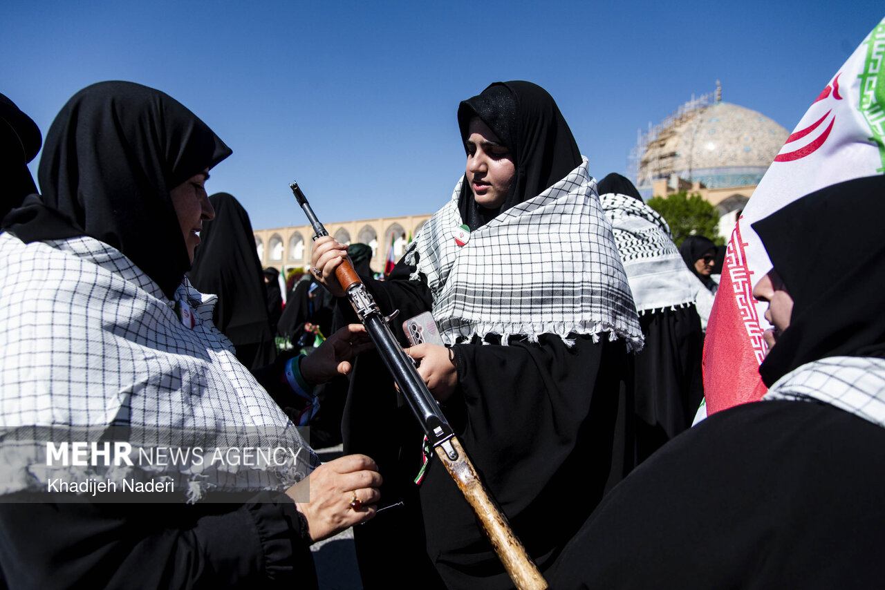 استانها اصفهان ۳ اردیبهشت ۱۴۰۵ - ۱۸:۵۳ دریافت تصاویر خدیجه نادری تجمع دختران جانفدا در اصفهان به مناسبت دهه کرامت و روز دختر، تجمع و رژه دختران جانفدا پنجشنبه ۳ اردیبهشت ماه ۱۴۰۵ درمیدان نقش جهان اصفهان برگزار شد. برچسبها اصفهان پویش جانفدا دهه کرامت عکس استانها مطالب مرتبط رجبی: بانوان امروز در میدان جریان ساز هستند؛ نقش زینبی و فاطمی بانوان