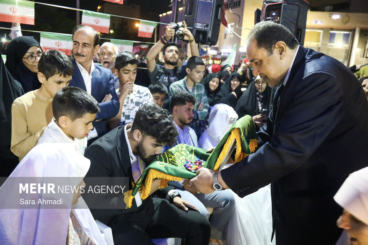 استانها خراسان رضوی ۹ اردیبهشت ۱۴۰۵ - ۰۱:۱۰ دریافت تصاویر سارا احمدی جشن عقد زوجهای مشهدی در شب میلاد امام رضا(ع) همزمان با شب میلاد با سعادت حضرت رضا(علیه السلام) مراسم جشن عقد ۱۴ زوج جوان در زیر بیرق امام مهربانی ها در مشهد برگزار شد. برچسبها عکس استانها مشهد ازدواج ولادت امام رضا (ع) خراسان رضوی مطالب مرتبط آغاز زندگی مشترک زوج اصفهانی در سایه میلاد امام رضا(ع) رجزخوانی مداح مشهدی در جوار بارگاه مطهر امام رضا(ع) مراسم جشن عقد ۱۴ زوج در زیر بیرق امام هشتم در مشهد پیوند آسمانی زیر سایه خورشید؛ آغاز زندگی ۷ زوج جوان شاهرودی نوای عاشقانه زائران رضوی در جوار بارگاه منور امام رضا(ع) سیره رضوی؛ سرچشمه الهام برای قلم اندیشمندان